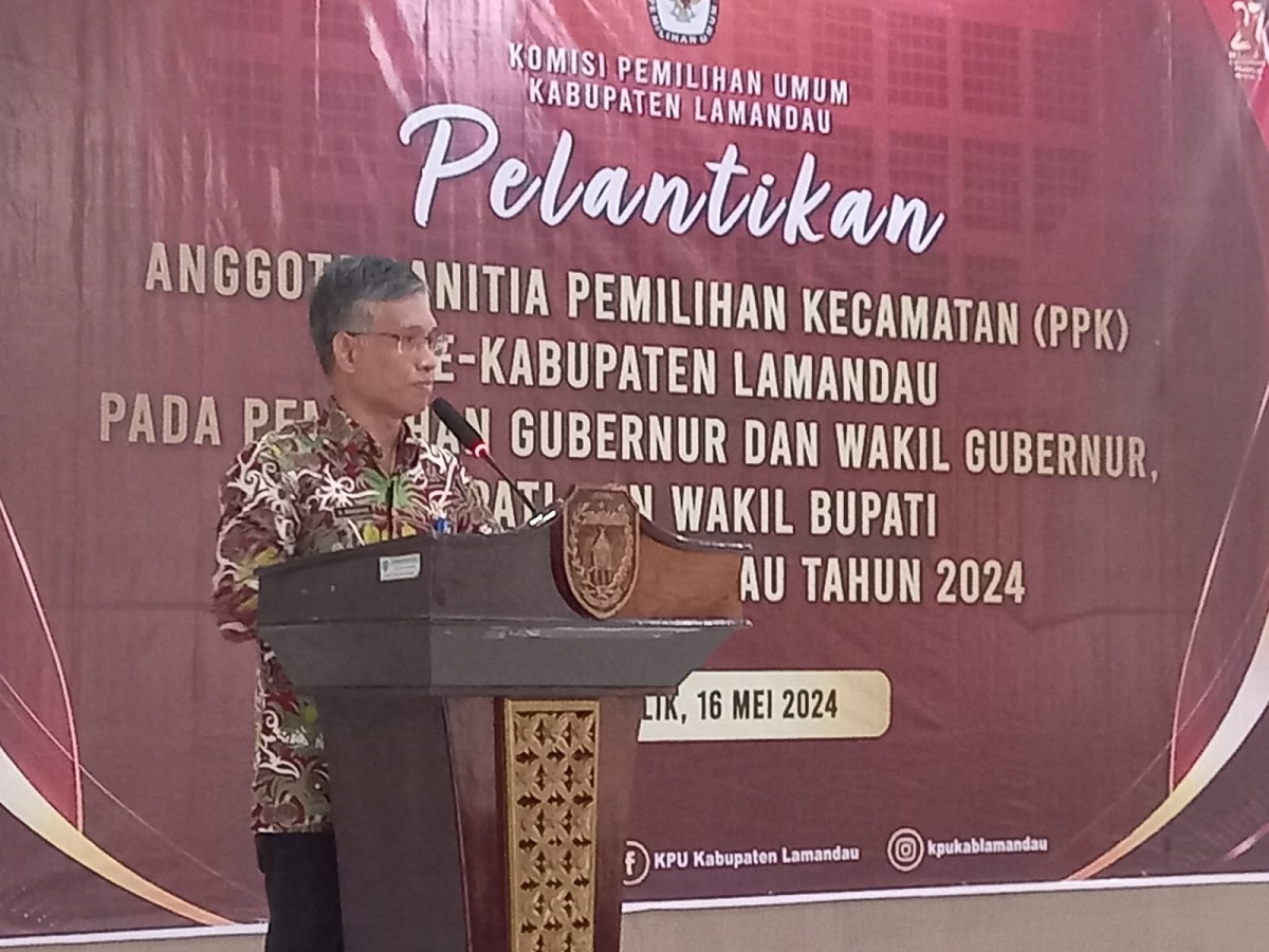 NANGA BULIK – Penjabat (Pj) Bupati Lamandau, Lilis Suriani, diwakili oleh Sekretaris Daerah, Muhamad Irwansyah, menghadiri pelantikan anggota Panitia Pemilihan Kecamatan (PPK) pada Pemilihan Umum (Pemilu) Gubernur dan Wakil Gubernur, Bupati dan Wakil Bupati tahun 2024.