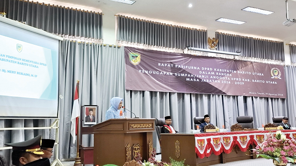 โSaya yakin rekan-rekan anggota DPRD Kabupaten Barito Utara masa jabatan 2024-2029 yang baru saja mengucapkan sumpah/janji, cakap dan mampu melaksanakan tri fungsi DPRD yang terdiri dari pembentukan peraturan daerah, anggaran dan pengawasan, serta mampu menjawab tantangan lima tahun kedepan,โ kata Mery Rukaini.