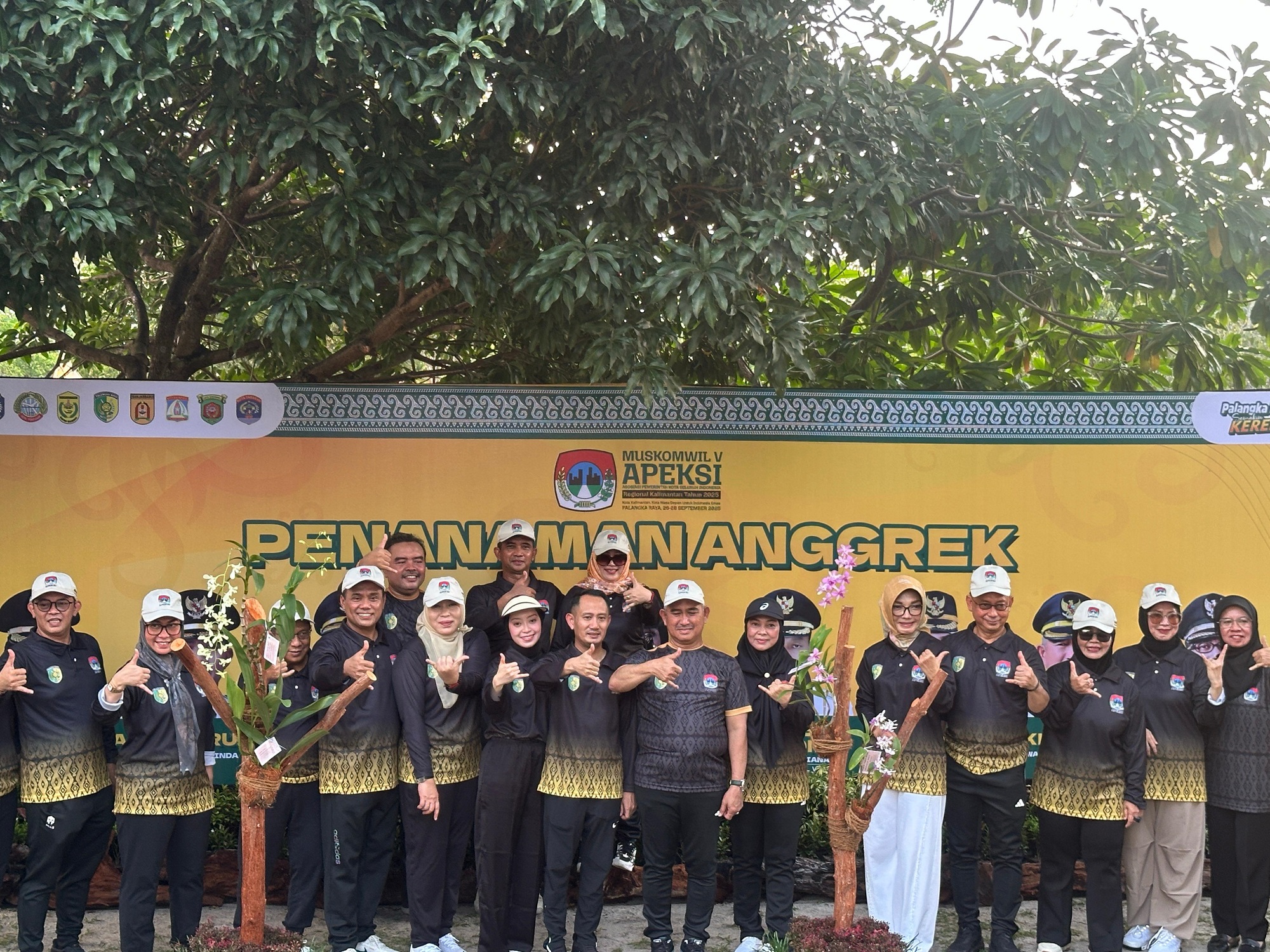 Sembilan Wali Kota Se-Kalimantan berfoto bersama usai menanam Anggrek Hitam dan rangkaian kegiatan Musyawarah Komisariat Wilayah (Muskomwil) V Asosiasi Pemerintah Kota Seluruh Indonesia (APEKSI) Regional Kalimantan Tahun 2025 di Palangka Raya, belum lama ini. (IST)